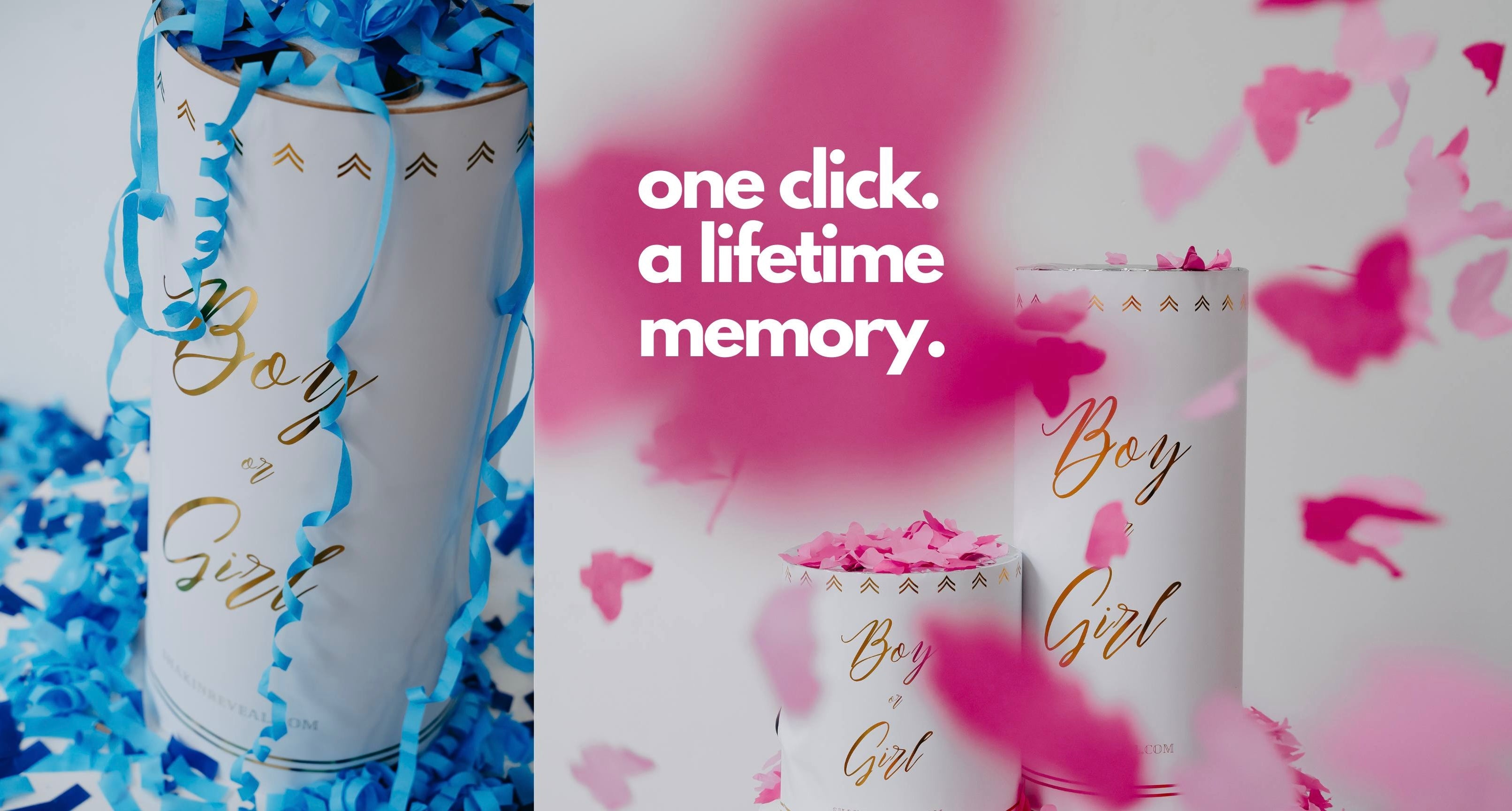 Welcome to Shakin Reveal, your one-stop shop for gender reveal party supplies. From automatic + handheld confetti cannons, to our giant powder jets, we help you create unforgettable celebrations filled with joy, color, and excitement.