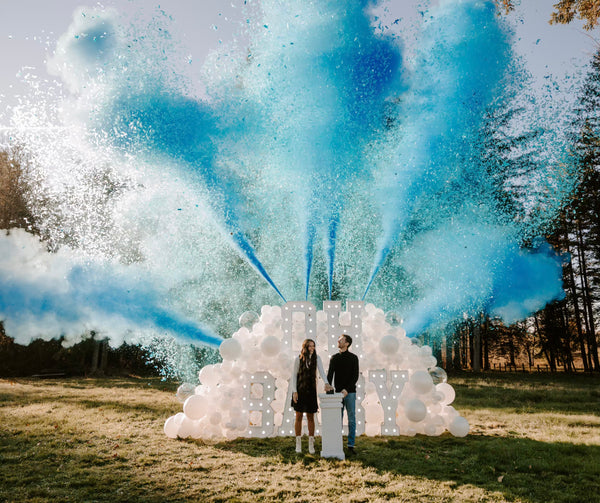 Marquee Letters, balloon installation, arches, pedestals, cold spark machines, etc. is also something we take care of for your reveal locally! Please fill out our INQUIRY FORM for all local reveal inquiries.
